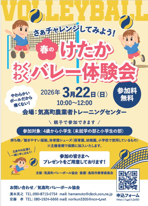 主催:鳥取市バレーボール協会・鳥取市小学生バレーボール連盟・気高町バレーボール協会